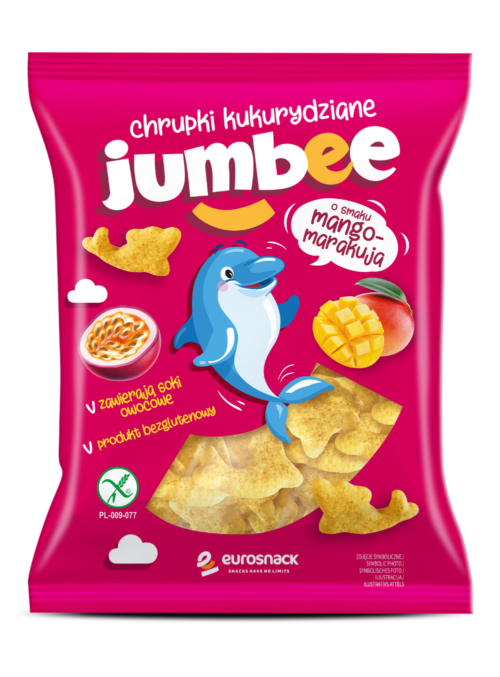 Jumbee Chrupki kukurydziane o smaku Mango -Marakuja 3D w kształcie Delfina