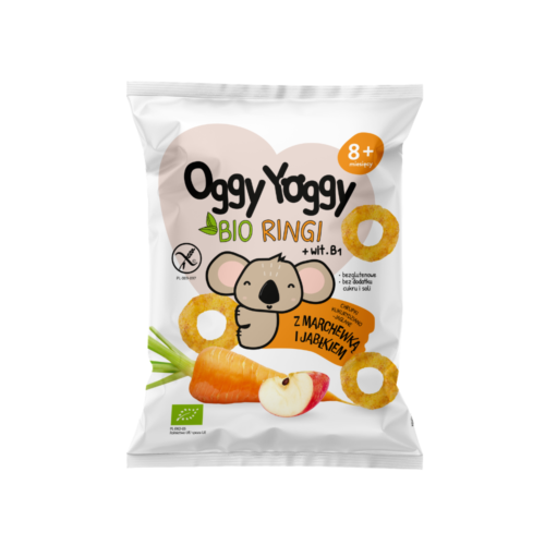Oggy Yoggy Bio Chrupki kukurydziano-jaglane z marchewką i jabłkiem w kształcie ringu, po 8. m-cu
