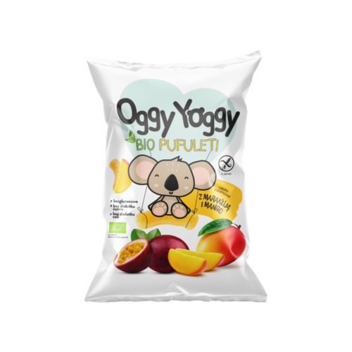 Oggy Yoggy BIO Chrupki kukurydziano-jaglane z bananem, maliną i buraczkiem w kształcie serca, po 8. m-cu.