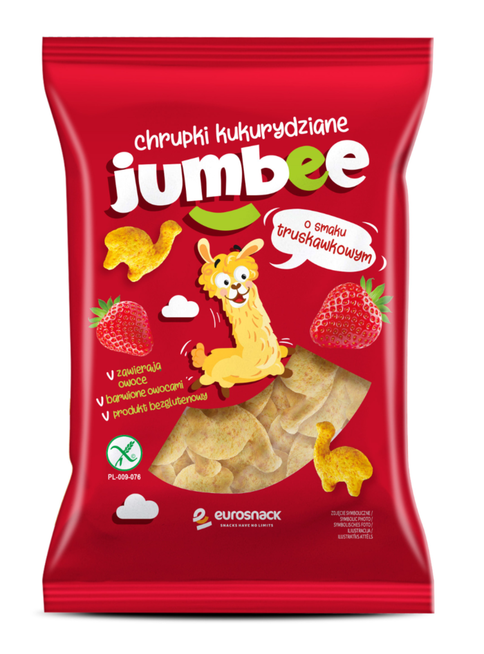 Jumbee Chrupki kukurydziane o smaku Truskawkowym 3D w kształcie Lamy